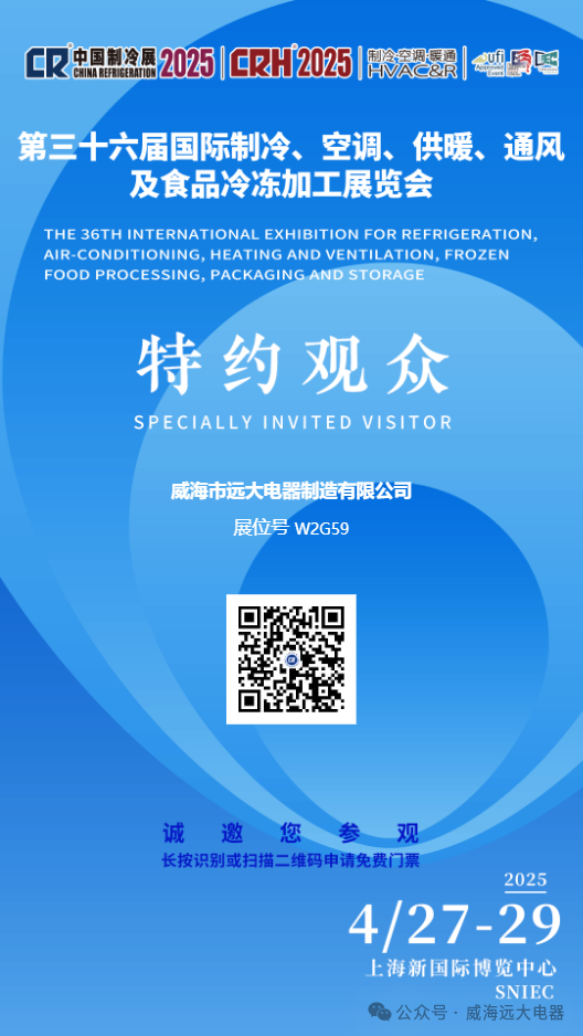 您好!非常感謝您長(zhǎng)期以來對(duì)威海遠(yuǎn)大電器的大力支持,第三十六屆中國(guó)制冷展即將亮相上海,屆時(shí)我們展會(huì)現(xiàn)場(chǎng)將會(huì)進(jìn)行我司產(chǎn)品陳列展示,在此,我們誠(chéng)摯的邀請(qǐng)您蒞臨我司展位參觀指導(dǎo),我們將會(huì)為您提供貼心、專業(yè)的產(chǎn)品與技術(shù)服務(wù)。