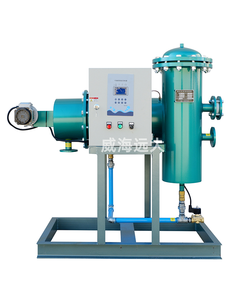 當水從管道旁路進水口進入過濾器濾筒內部,雜質被攔截在過濾筒內壁,過濾后的干凈水從出水口流出,當濾筒內壁的雜質積累到一定數量,過濾器進出口的壓差達到預設值、達到清洗時間或手動預制時,過濾器將開始自清洗過程,清洗時系統(tǒng)不斷流。 旁流處理器的整個運行過程由隨機配備的一個智能控制箱來控制。